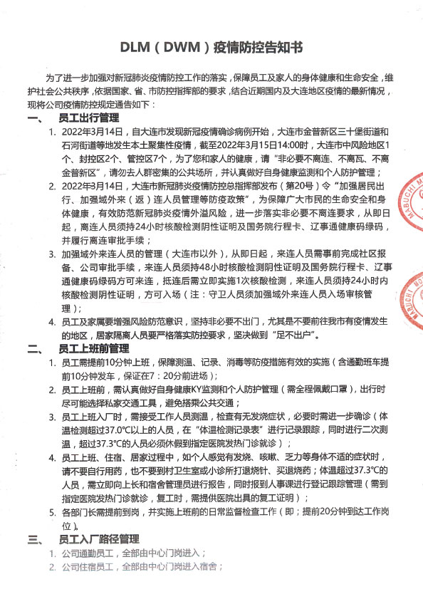DLM(DWM)疫情防控告知書